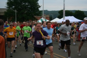 I came around the first corner, and looked at the flag-waver (ie: the person who keeps runners going the right way) and wondered why on earth I thought that running a mile after a 5k was a good idea! I focused on the backs of the people ahead of me, and started picking them off and pulling them in. (Now that’s not quite as impressive as it sounds.. Most of them where rather overweight and almost all older than I am.) I came through with a time of 17:03 for the team, and our third runner headed out. He ran well (remember, he did the 5k also) and our team finished in 23:26.
