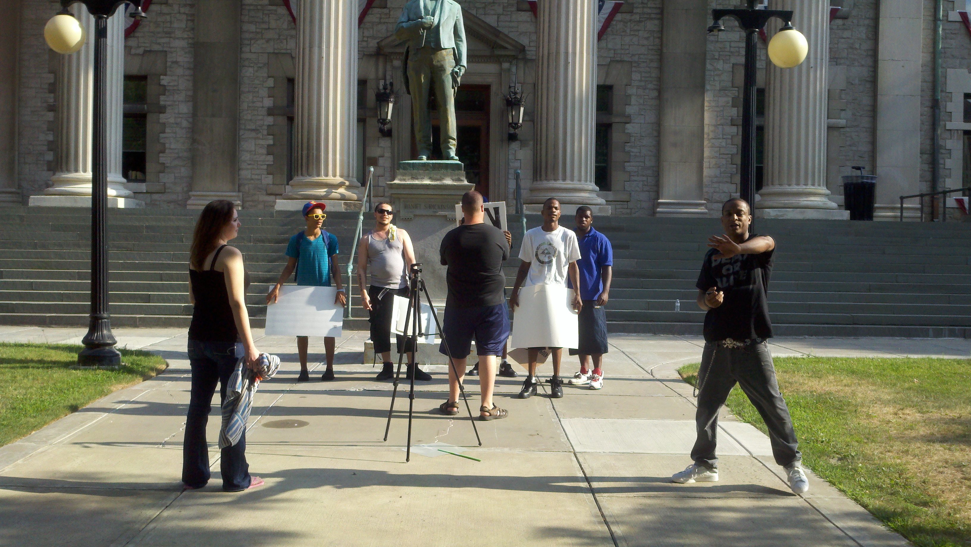 The first obvious statement – is that it was hot. My trusty water bottle became warm in no time – yet still remained the greatest thing in the world. The run itself was mildly painful (my Achilles tendon has been bothering me, and being a regular Einstein – I didn’t think of using my KT tape until monday morning), but VERY interesting. I ran by the Binghamton court-house, and saw a bunch of people holding up protest signs – something I did NOT expect to see, especially on a Saturday! (Plus, protesters are usually in front of the federal court house.) I turned around, pulled out my cell phone and snapped a picture.