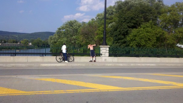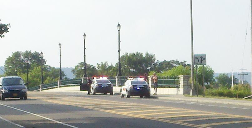 Then – a mile later I turned onto the Tompkins Street Bridge, and watched a guy jump off of it. Now, it didn’t look like a suicide attempt (and would have been a really poor one if it was), as he was wearing cut offs and sneakers – while talking to his friend (before jumping) whom didn’t seem concerned. As I wasn’t expecting it – I didn’t get a picture of the Jumper.