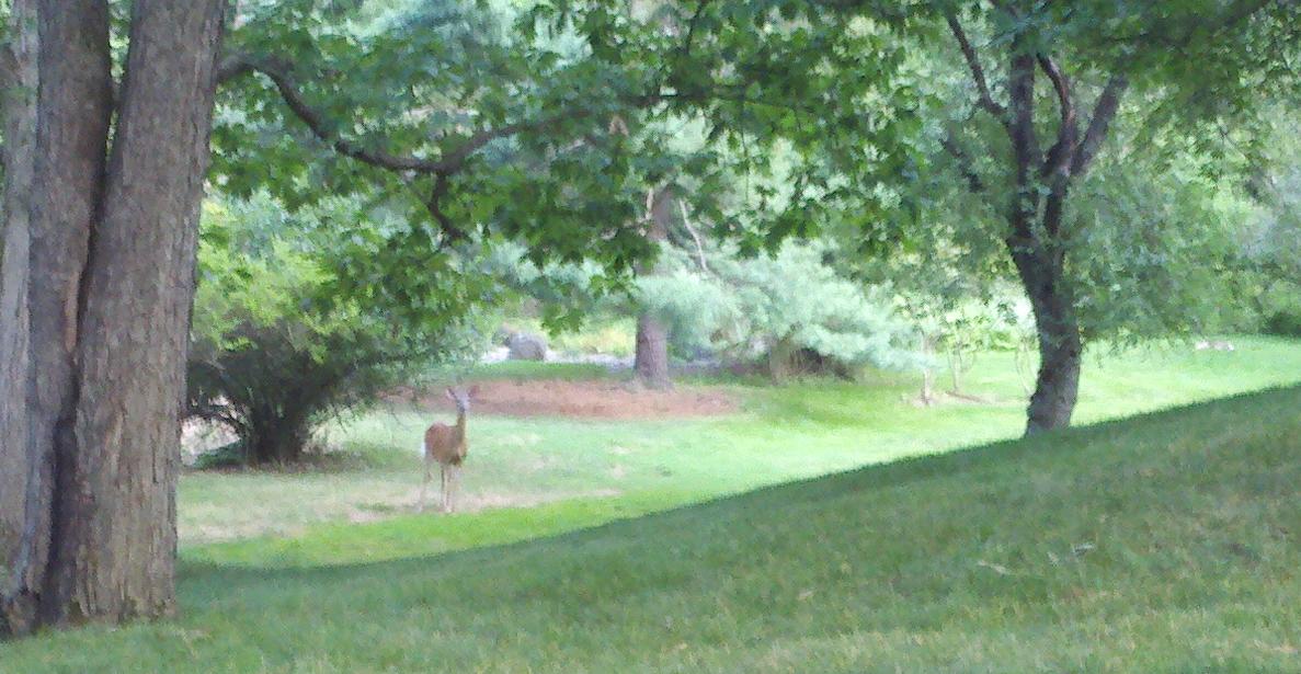The advantage (some times) of getting lost, is that you might get to see some interesting things. In the middle of a neighborhood – between two houses – The doe shown above was just watching me run. I got as close as I could to take a picture, but due to the cell-phone camera, it looks like I was much further away.