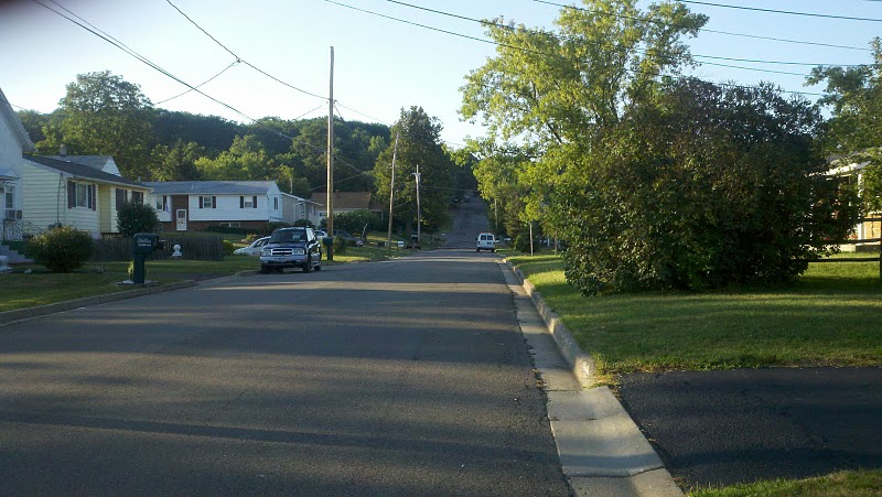 See where the road goes up and out of sight behind the trees? That is where the real hill begins. For locals, its Country Club Road.