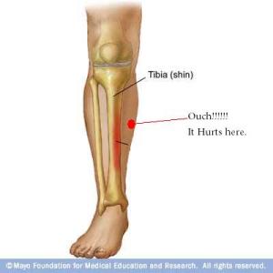 I have to admit, I am growing progressively less amused with the idea of ankle pain. My calves seem to be doing GREAT!!! I did 3.5 miles yesterday with a “Faster-than-marathon” pace – and they felt AWESOME!!! In fact, my whole body felt great – EXCEPT for my shins on my left leg. I have one place on the inside of my leg (Front/inside) that is quite painful. There was a matching pain on the outside – but the inside one was definitely worse. I cut my run short from what I had planned (it was going to be a mid-week longer run) due to this. The last half mile or so was REALLY painful.
