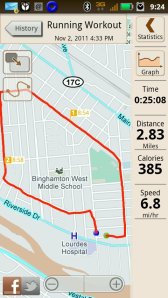 I had my phone with me to track the distance, but had the volume down so that I was just enjoying the run. I had a loop in mind that was somewhere between 2.5 and 3 miles, so off I went.  It was AWESOME!!!!  No pain in my muscles, no Achilles tendon pain, no shin splints – it was GREAT.  It was one of those runs that make you look forward to your next run.  This seemed especially remarkable to me as my “Track-record” hasn’t been very good for running in the last month or two.  Usually I would be wheezing and questioning why I had taken so much time off – but not last night!  It was like a cosmic-reward for doing the “right thing” and taking it easy.. (ok, maybe not.. but it is how it felt!)  I was especially pleased that the first two miles were each under 9 minutes!