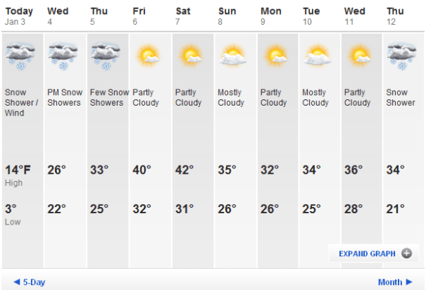 The forecast for the next few days show the weather returning to reasonable temperatures from our current (And normal) weather of 16 degrees. That is a nice thing for the out-door runs! Down with treadmills!