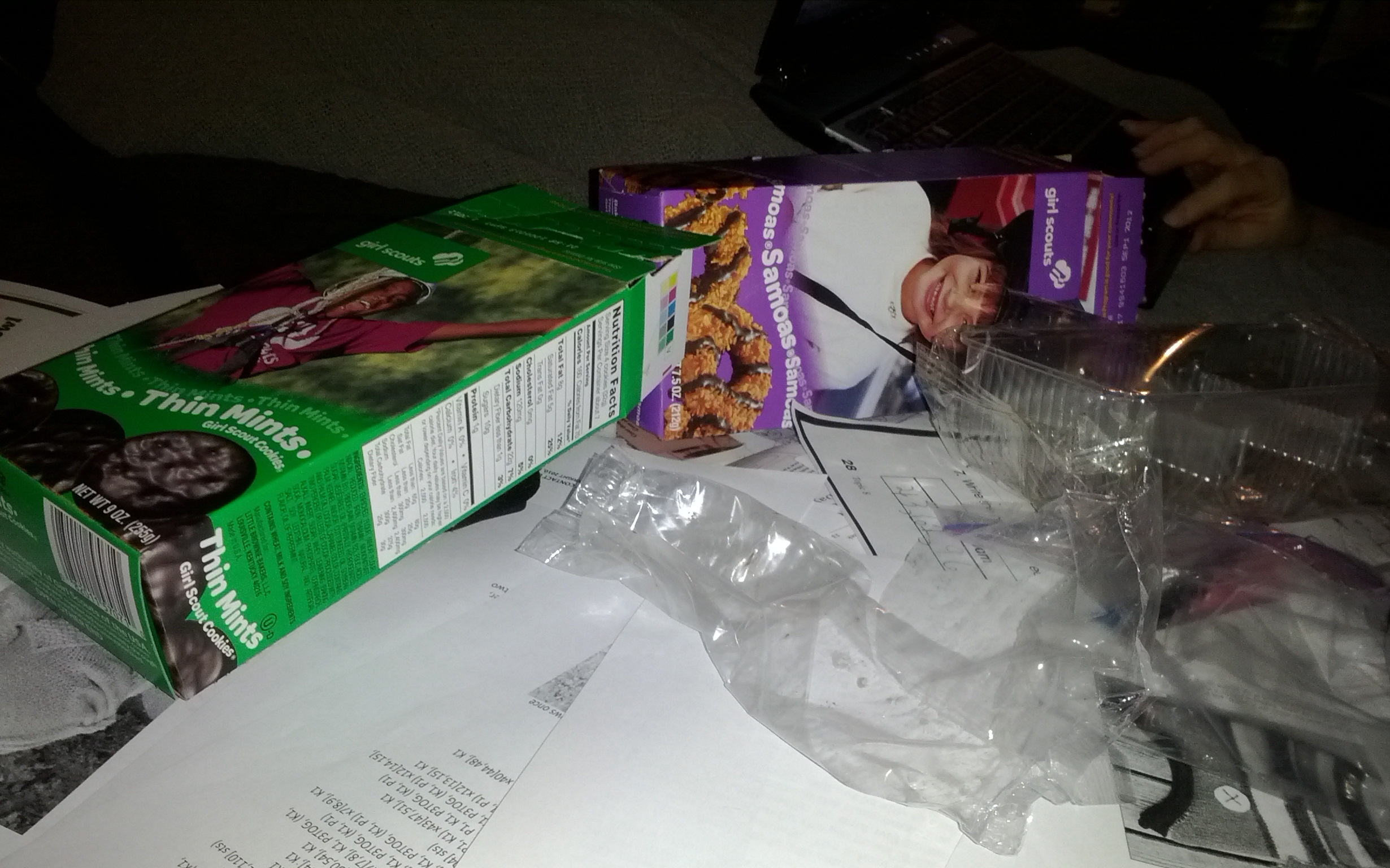 After the Cookie Count and sorting (don’t understimate the workout of lifting many boxes over and over..), we headed on home….