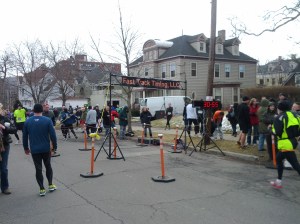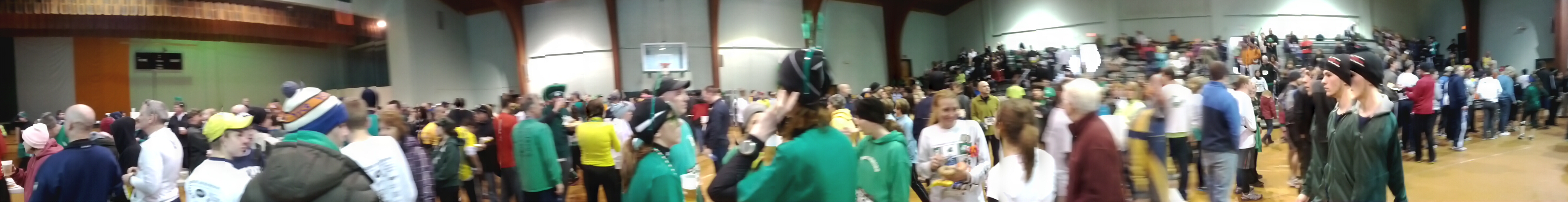 There were a variety of outfits from the mundane, to green-haired kilt wearing runners.  The gymnasium was PACKED! (probably because people were avoiding the cold.)  I wasn’t terribly impressed with the packet pickup.  First you stood in line and got your number (mine was 660.)  You were supposed to remember the number while you stood in a really