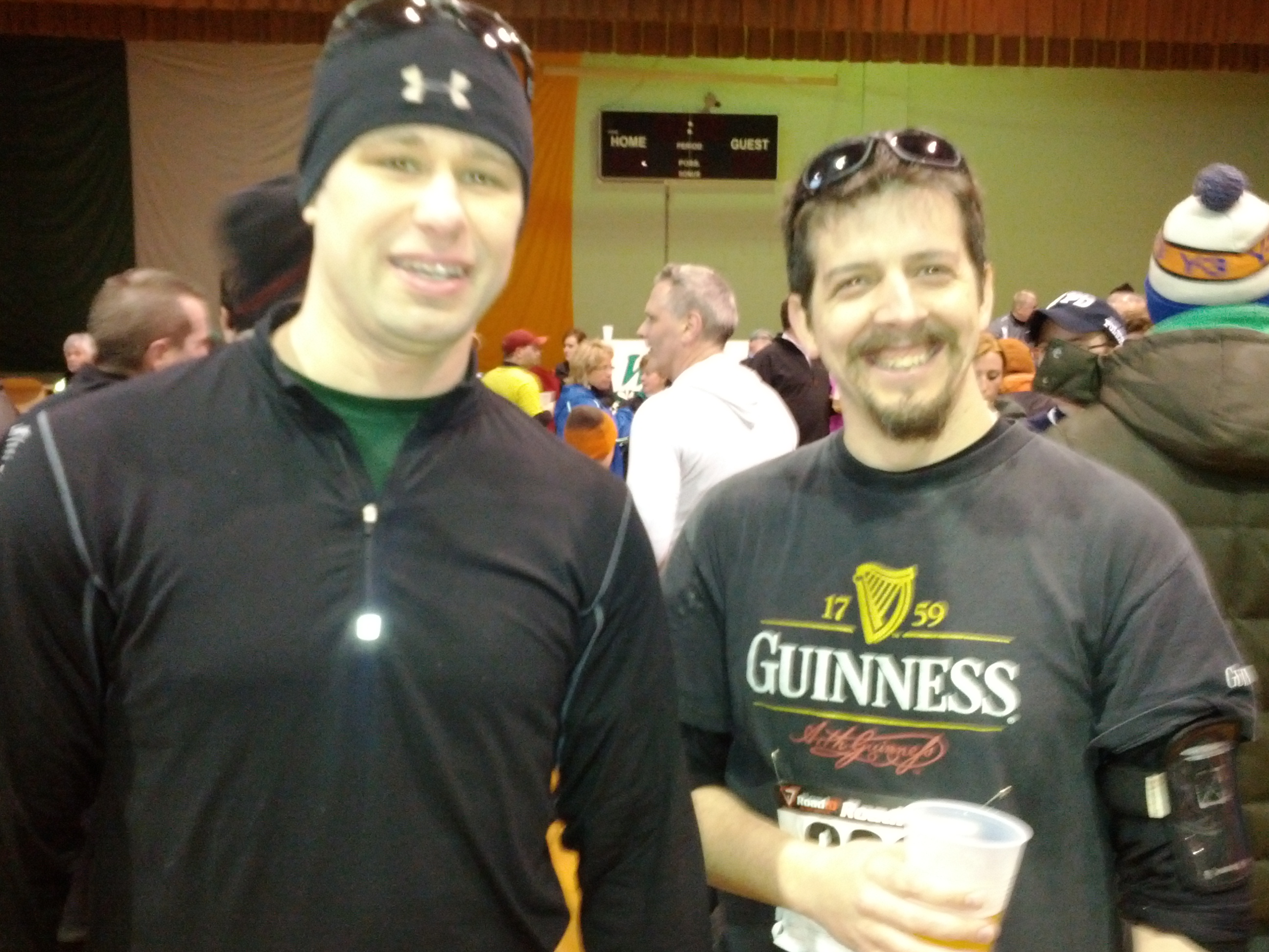 hey.  I love it when I see someone I  know.  (Chris is the one that got me running again, by sending a Facebook message to a bunch of “Cross-Country Runners” from Seton Catholic Central in the mid ’90s – asking if we all wanted to do the St. James 5k a couple of years back.)  Now Chris has been running for  few years, and has been far brighter about it than I have. He didn’t go buy minimalist shoes and then ignore all the advice and run too far.  Nor did he try to double his running distance from one week to the next, in preparation of trying to get ready for a marathon last year.  (In other words in addition to being able to run further and faster than I can – he is able to run more intelligently than I do.)