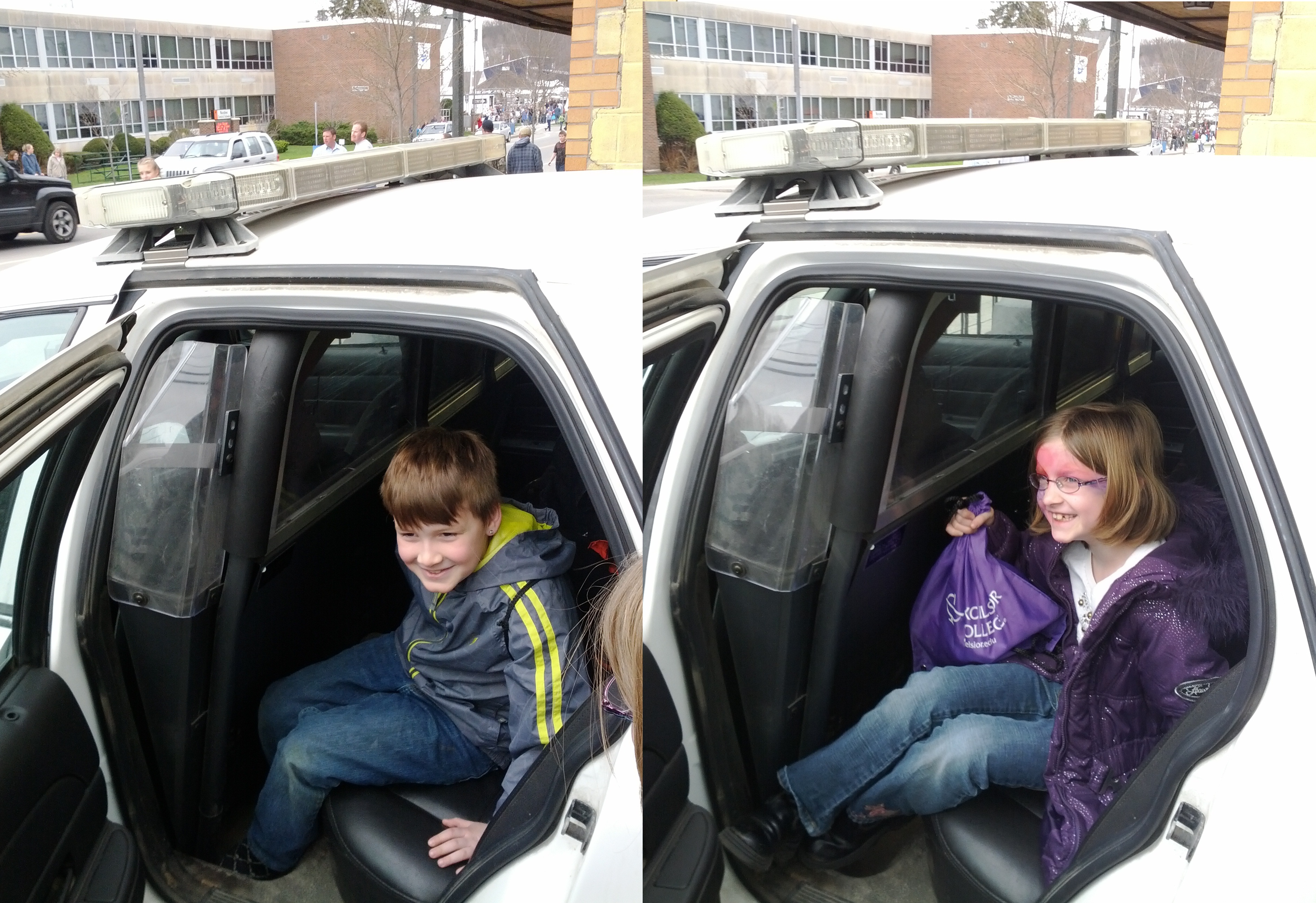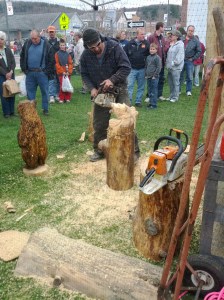 After breakfast we headed up to the MapleFest in Marathon. It’s a small town in upstate NY (small enough that it makes Binghamton look big!) They had the obvious things you would expect in a “Maple” fest. Maple Candy, Maple Sundaes, Maple Milk Shakes, Maple lollipops, Maple Syrup making demonstrations, Museum of Maple-Syrup making products, and more Maple-related items! They also had a Chain-saw sculptor, Face Painting, Crafts for Sale, a demonstration from Worthington Kennels on dog-training, a horse-drawn wagon ride, police-dog demonstrations, police-car for children to sit-in and look at, and far more.