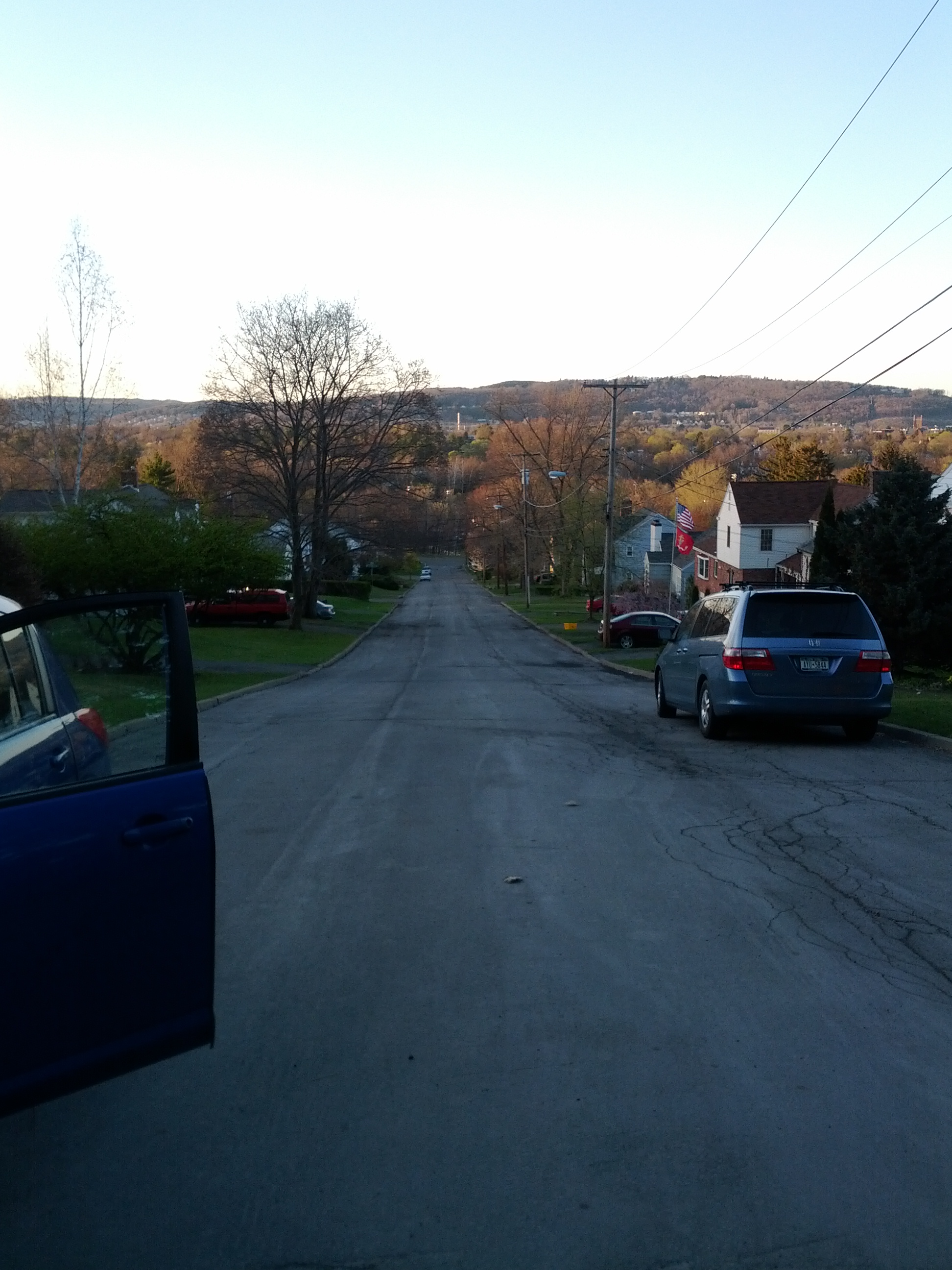 Given that seeing my old cross country coach and his team inspired this rising thought, its only logical that I headed to a hill my Cross Country team used to run on! No, not the nice sloping Laurel Ave hill he had his team doing loop after loop on – but Denton Rd over on the south side of Binghamton. Now, back in the day – when my age was less than half what it is now – We used to sprint from the bottom to the top. I thought that might be a bit much for me now, so I just ran from the bottom to the top. Mind you for this paragraph we are defining “ran” as “any sort of motion that moves the body up the hill, whether it be slow or fast, and has a similar appearance to what people call “running” regardless of its speed.”