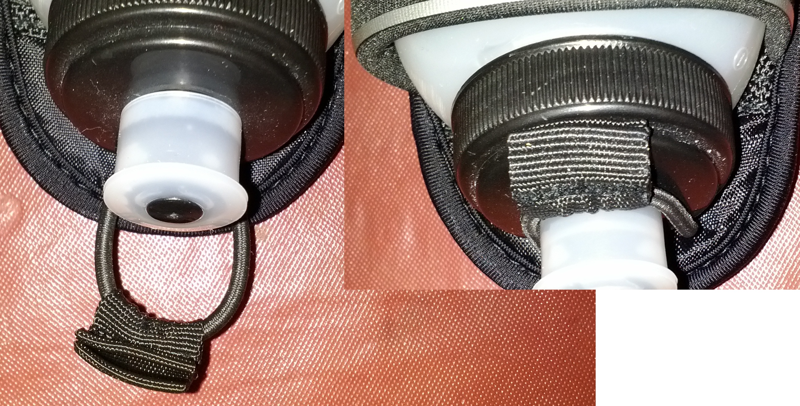 I had to tighten the belt a little bit with the bottles on it, but still did not find it very noticeable. You could feel the bottles, but the 6 oz size seemed to be nice as it wasn’t annoying, and the bottles didn’t bounce much. The bottles are held into their holsters with little loops that go over the top – so there is no concern with them falling out! The loop was very easy to open to remove the bottle, and also easy to put back after drinking.