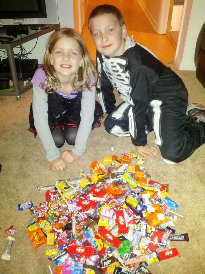 As you can see my little Witch/Vampire and Skeleton had quite the haul….And somehow I am going to eat none of it. While this way-to-much-candy-in-the-house season continues, I will keep you updated on how much of their candy I have (or have not) eaten!