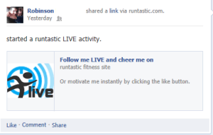 Another interesting feature of Runtastic is the “Cheers” feature. When you start a run, it will ask if you want to post a message to Facebook. If you do so, people can “like” the post – and you will hear it as you run. I have had one person do this – and to be honest it scared the bejezus out of me. All of a sudden I heard a positive message (I am afraid I don’t recall exactly what it said at this point) out of nowhere. I didn’t realize it was a “cheer” until I got home and saw someone had liked my Facebook post! That means next time I will think it is really cool instead of being freaked out!