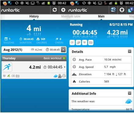 But, we have many choices that all track our runs/calories very well. Runtastic, Cardiotrainer, Endomundo, Mapmyrun, etc… So what does Runtastic offer? They allow you to sync information between devices without a problem. I take a small phone (my work one) with me sometimes when I run, and other times I use my personal phone. I like to look at my information on my Asus Transformer tablet. All of these will sync the history so I see the same information – with details – without having to worry about which one I used when I ran. By comparison – Cardiotrainer will download time/distance, but you cannot see your actual track, mile splits, altitude, etc – when you restore information.