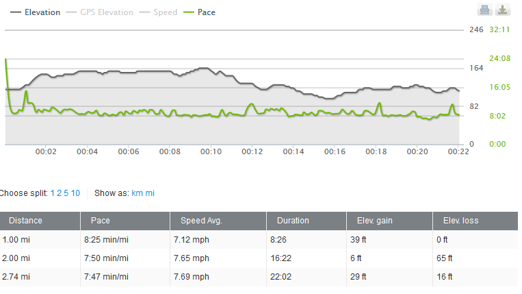 I was pleased with my pace, though I cannot lie. I wish I had run one of the miles six second faster, so my pace was 7:59 instead of 8:02.  Not that it would have made a whole lot of difference, but I do like times that start with ‘7″ better.