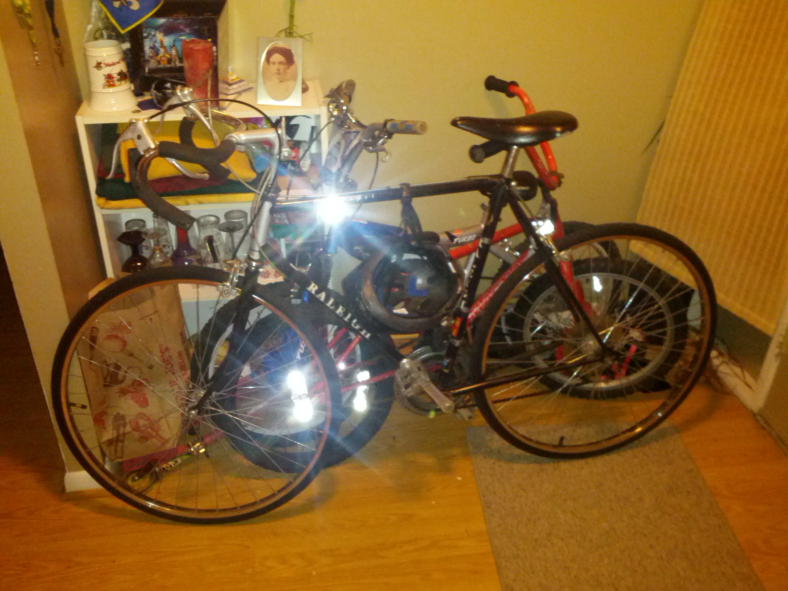 Then everything went back together!  I pumped it up to the 90 lbs that the tire said to (weird to me that it is determined by the tire, not the tube..)  Unfortunately it was around 8 o’clock at this point so Dusk was rapidly approaching.  I still wanted to test the bike out, so my son and I headed out for a quick 2 mile ride.  The bike performed well!