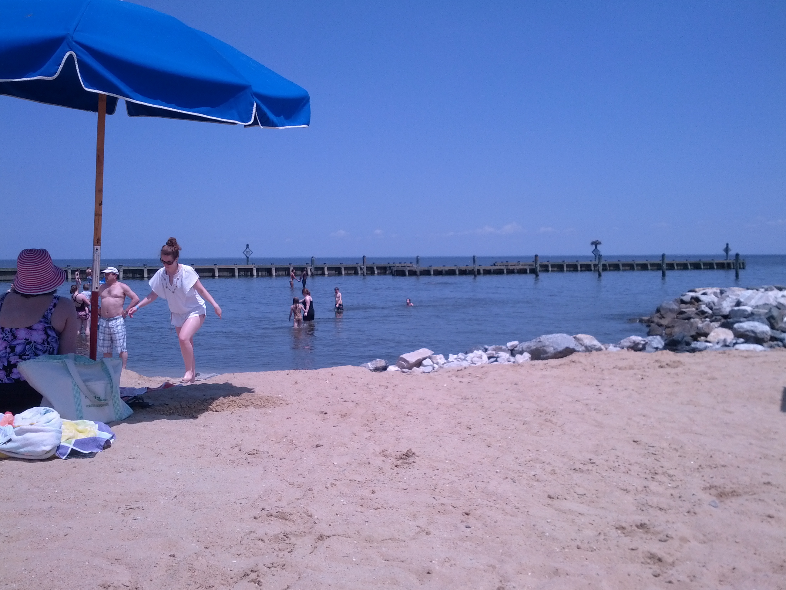 But on a 91 degree day? It had water you could sit in and cover you up! Think of it as the Chesapeake-bay equivalent of those blue inflatable pools! I have to admit that if I had known it was going to cost us 40 bucks (+ another 10 dollars for the beach-umbrella), I would have gone to the water park in the same town. that was $76 for the family! But regardless, we had a wonderful time!