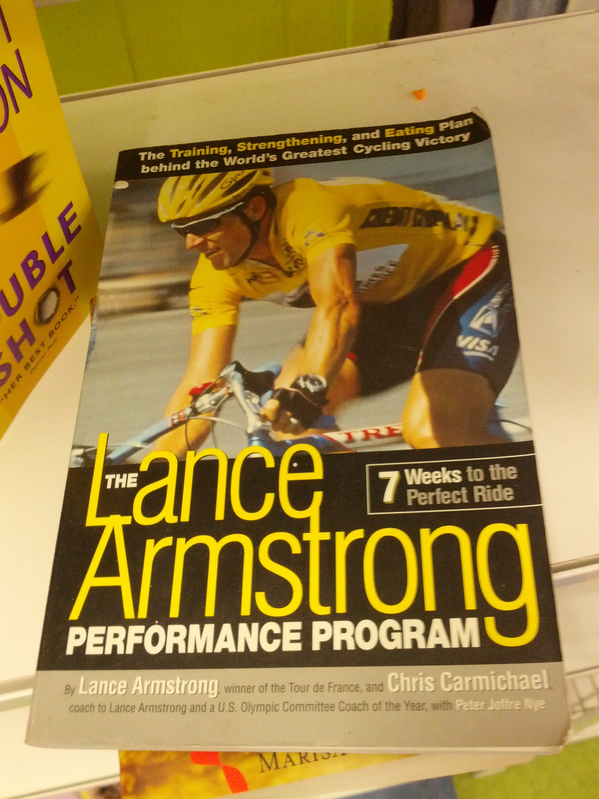I checked out the inside of this book – and was surprised.. I was expecting a “how-to” on proper doping techniques to drastically improve your performance.. Nope. Didn’t even have instructions on how to badger other people into helping hide your doping…