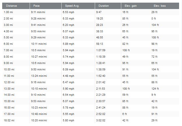 My goal was to maintain a 10 minute per mile pace, so I really concentrated on that with some success.  While I took a different route than my 14 miles (something about needing to do 4 more miles..), the ending 5 or 6 was the same..